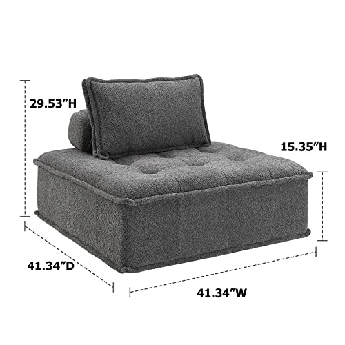 Volans Sherpa Fleece Sectional Sofa, Mid Century Modern Upholstered Square Modular Sectional Sofa Couch With Two Removable Non-Slip Pillows, Living Room Sofa Set, Grey, 1 Pcs