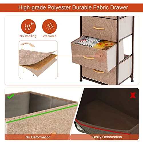 - 🕝【Material】: Fabric Non-woven fabric drawer can be wiped directly with a wet cloth; Solid MDF board with Waterproof design; Easy pull drawers with wooden handles for smooth opening and closing.