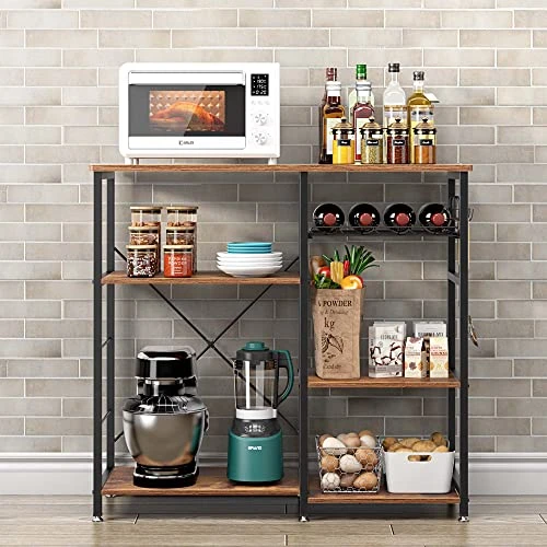 - Dimensions – 35.4″Wx15.7″Dx32.7″H. Our kitchen storage shelf is not only a shelf for ovens, microwaves, coffee pots, toasters and mixers, but also an organizer for other items.