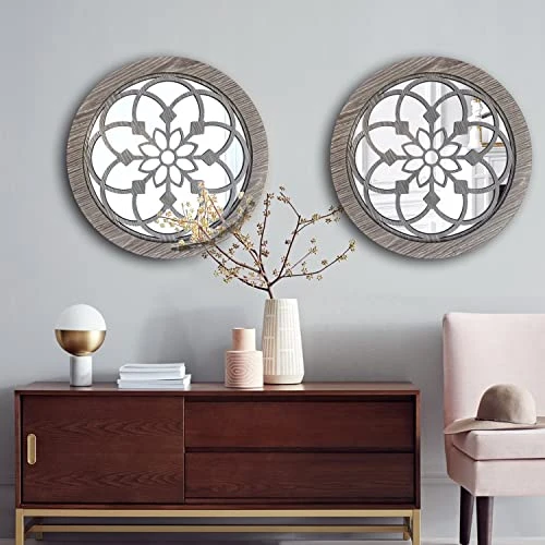 - NICE SIZE:20”wall mirror.The overall look of the design of the mirror is very vintage and posh and give it a vintage rustic farmhouse appeal.This beautiful mirror will make any room look fancier.