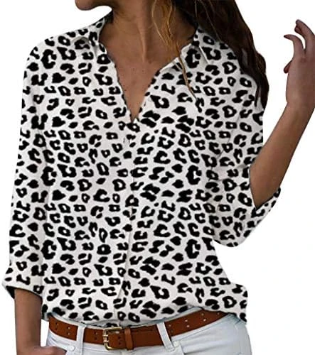 Plus Size Blouse for Womens V Neck Tops Long Sleeve Tshirt with Buttons Floral Print T Shirt