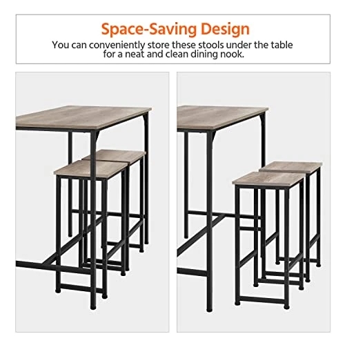 - 【Space Saving】Featuring a rectangular shape, this kitchen table set will perfectly fit into any narrow space. It can be used as a cozy bar table, a simple breakfast table, or an island for meal prep. Two stools can be hidden underneath for better utilizing the living space.