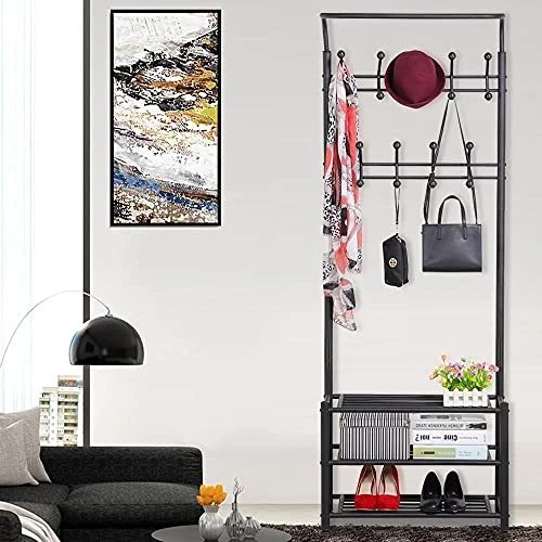 - Efficient Use of Small Space: The entryway coat rack is built in a compact size measuring 68.5 cm/ 27” wide, 32.5 cm/ 13” deep and 187 cm/ 74” tall. Ideal for small apartment, mud room, and narrow foyer/entryway.