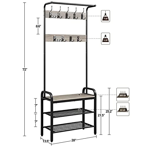 Be the first to review “Yaheetech Hall Tree With Bench And Shoe Storage For Entryway, 4-in-1 Coat Rack Shoe Bench With 23 Hooks, A Hanging Rod, Metal Frame, Gray” Cancel reply