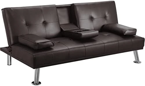 - 【Selected materials for comfort and durability】Supported by four Chrome-plated steel legs, this sofa bed boasts a high capacity of up to 772lbs. Resilient foam filled-cushions are upholstered in soft-to-the-touch faux leather, offering extra comfort and the ease of cleaning as well.