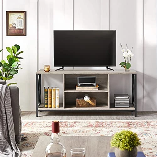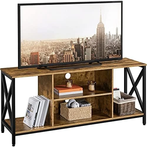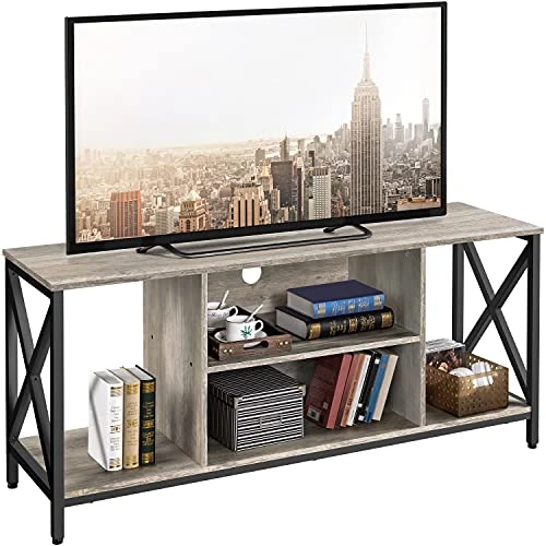 - 【AMPLE SPACE FOR STORAGE & DISPLAY】: This TV stand offers 2 middle open compartments and 2 on the sides for organizing and displaying. And not to mention the spacious 55” long 16” wide tabletop with a high load capacity up to 110lb.