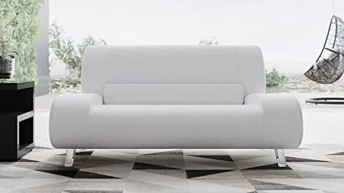 Zuri Modern Aspen White Microfiber Leather Sofa Set With Loveseat And Chair